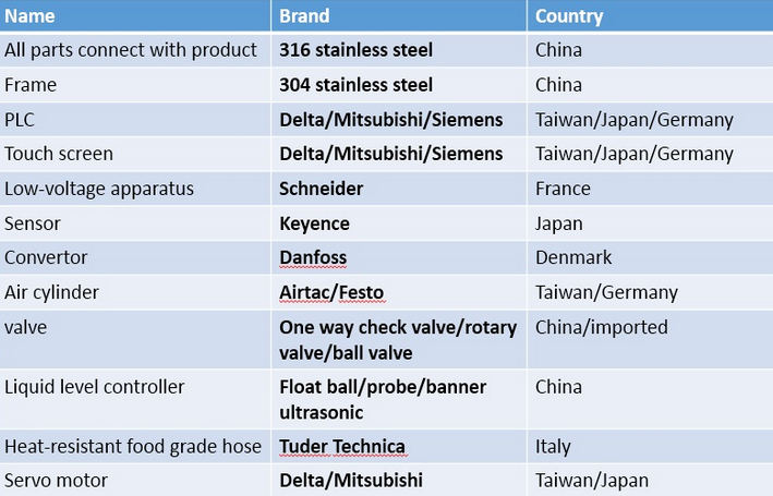 2. Sono realizzati con componenti pneumatici Festo dalla Germania e componenti elettrici MITSUBISHI dal Giappone.
